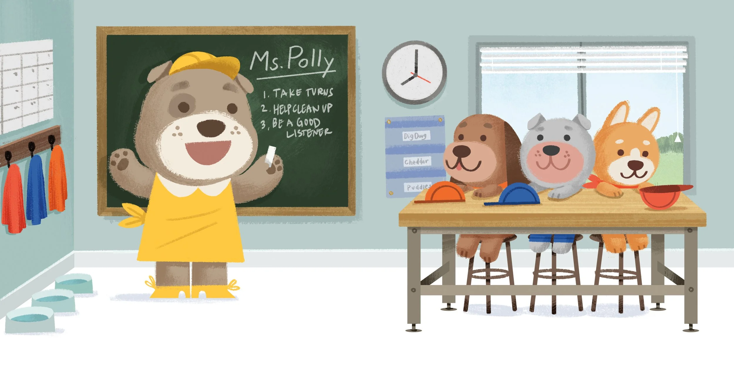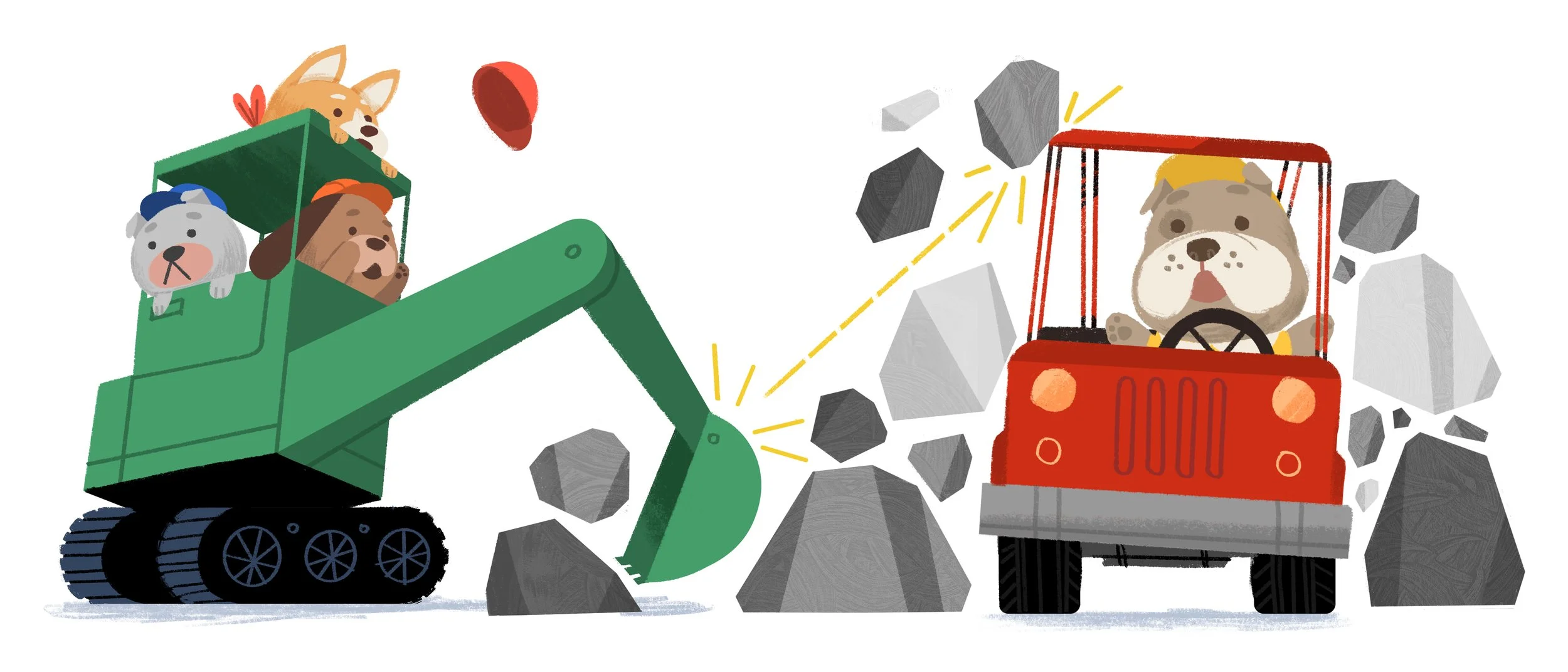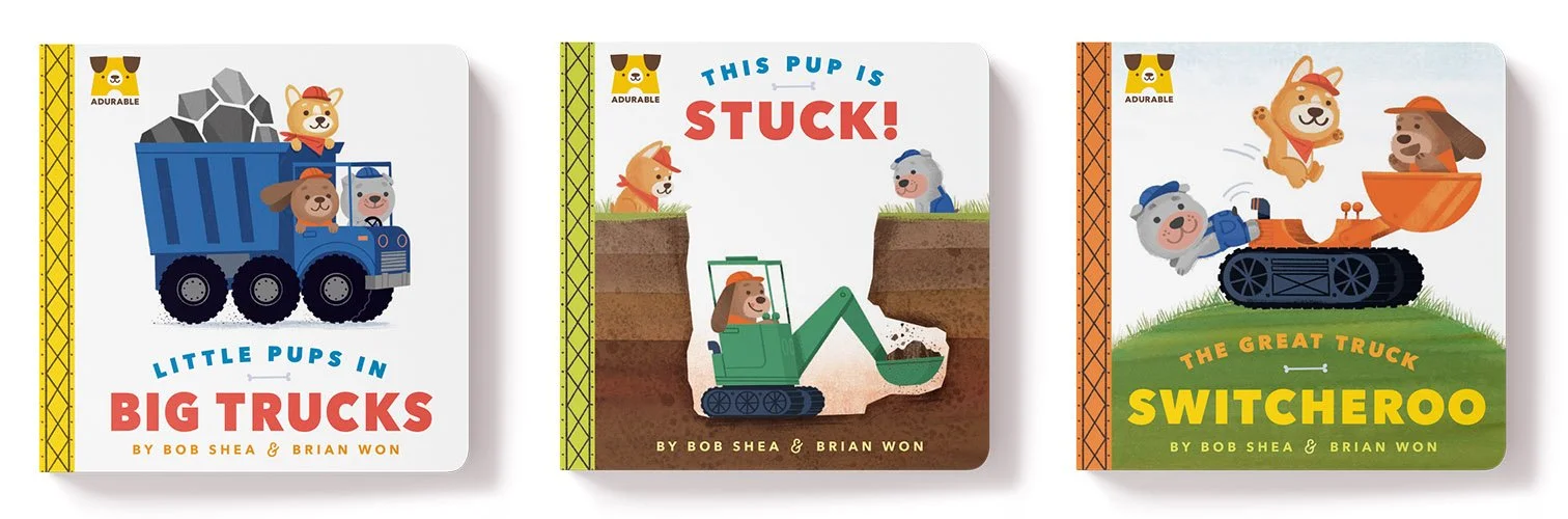 We met over dinner and a trip to Daiso, where Bob blew ten dollars on stationery and erasers. I knew I liked this guy. We also found out we both owned very sensible Honda CRVs. So when Bob came to me with a series about puppies driving construction trucks, I didn't need much convincing.