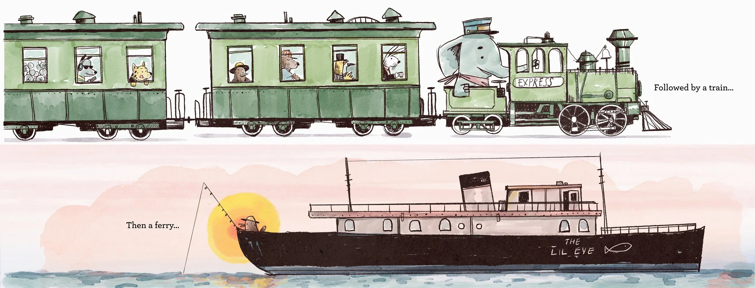 The commute was 1.5 hours each way. I'm pretty sure the bumpiness of the metro train shows up in the line work somewhere. Another favorite memory is drawing in the dark next to Charlie while he fell asleep, pen nib scratching on my matte screen protector. I still illustrate children’s books on my commute today, three hours round trip.