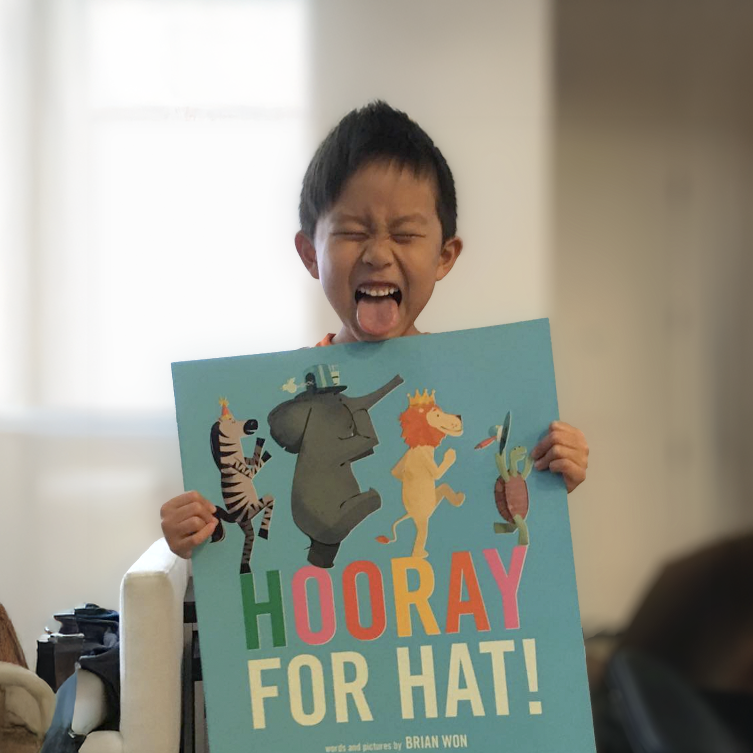 My son Charlie was three and obsessed with picture books. We'd come home from the library with fifteen at a time. One day he ran through the house yelling "Hooray for Hat!" after watching Blue's Clues. The real line was "Hooray for Hats," but his version stuck. What if there really was one long, shared super hat (the Voltron of hats)?